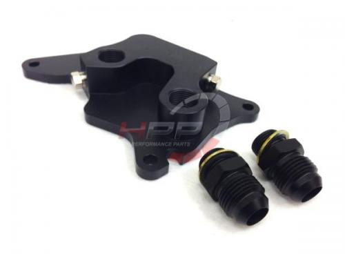Slouží k napojení olejového chladiče na stávající olejový okruh. Adaptér umožňuje mnohem větší flexibilitu při montáži vedení. Vyrobeno ze slitiny hliníku na CNC, černý elox pro maximální odolnost. Adaptér obsahuje vývody na čidla přídavných budíků teploty a tlaku oleje.