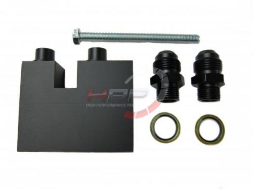 Slouží k napojení přídavného olejového chladiče na stávající olejový okruh k sériovému. Adaptér na olejový výměník umožňuje mnohem větší flexibilitu při montáži vedení. Vyrobeno ze slitiny hliníku na CNC.