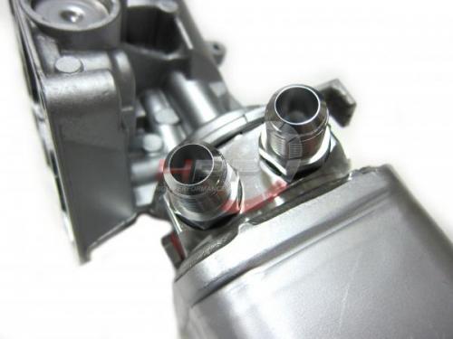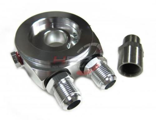 Slouží k napojení olejového chladiče na stávající olejový okruh. Adaptér na olejový výměník umožňuje mnohem větší flexibilitu při montáži vedení. Vyrobeno ze slitiny hliníku na CNC. Adaptér má výstupy pro napojení čidla tlaku oleje a čidla teploty oleje (závity 1/8"-NPT). Adaptér lze natočit dle potřeby.