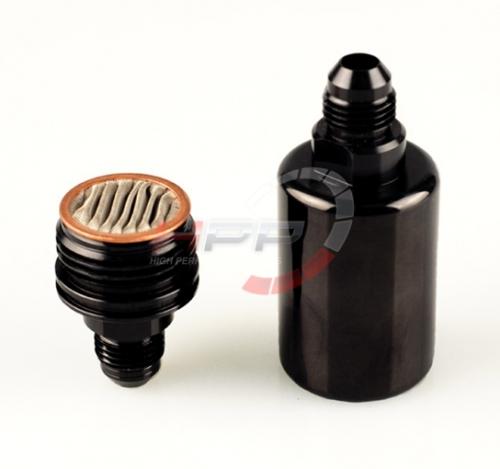 Benzínový filtr Russell Performance style univerzální D-06 (AN6). Hliníkový. Eloxovaný. Šroubovací koncovky D-06 (AN6).
