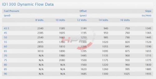 - static flow rate @ 43.5PSI (3bar/300kPa): 1015cc při použití paliva o teplotě 52°C;