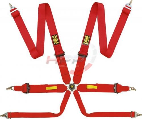 Bezpečnostní pás OMP Tecnica 6-bodový červený - karabina (FIA homologace).
