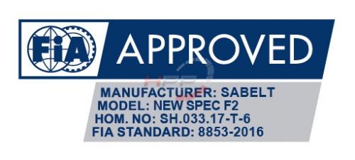 Profesionální závodní formulový 6-bodový bezpečnostní pás Sabelt New Spec F2 s šířkou 51mm (2"). Upevnění pomocí karabiny zkracuje dobu pro zapínání. Ocelové nastavovací prvky. Stahovací. Ultralehká přezka. Břišní a ramenní pás s uchycením se dvěma otvory 7/16" a průměr M8. Pouze pro použití se systémy FHR* včetně H.A.N.S.