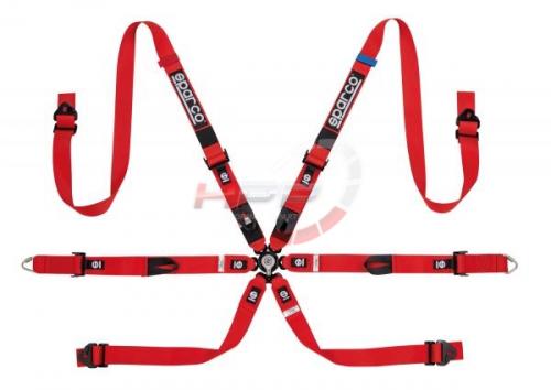 Bezpečnostní pás Sparco Prime H-7 04821H 6-bodový červený - karabina (FIA homologace).