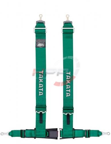 4-bodový sportovní pás TAKATA Drift III v charakteristickém zeleném provedení s homologací ECE pro využití na veřejných komunikacích, případně závodech bez potřeby FIA/SFI homologace. Pás je vybaven centrální tlačítkovou sponou, 76mm (3") ramenními pásy a 51mm (2") pásem v oblasti pasu. Pás je uchycován na montážní oka.