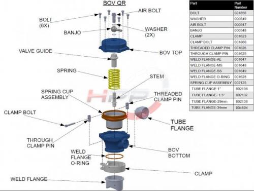 - Ventil vyžívá standardní Tial V-band přírubu a může být kdykoliv změněn na standardní otevřený ventil pouhou výměnou spodního dílu.