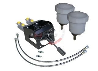 - Jednotka využívá systém dvojího brzdového válce, který je ovládán vyrovnávací propojkou, která zajišťuje rozložení brzdného účinku mezi předními a zadními brzdami.