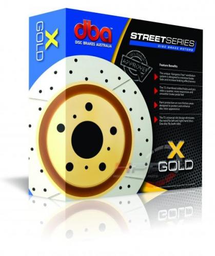 Street Series X-GOLD cross-drilled - sportovní kotouče pro běžné použití. Řada kotoučů Street Series X-GOLD je určena pro běžné použití u osobních automobilů s běžným výkonem. Jsou doporučené pro uživatele, hledající kvalitnější a vzhlednější kotouče oproti sériovým. Tato řada se vyznačuje patentovaným chlazením "Kangaroo paw", designem X-GOLD cross-drilled zvyšující jistotu a účinnost brzdné síly. Kotouče jsou také opatřeny černým nátěrem pro prodloužení životnosti.