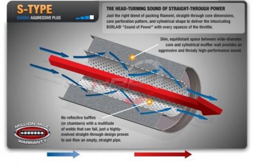 Verze "S-Type" nabízí střední úroveň zvuku, ačkoliv je zvukový projev výfukového systému hlasitý, zřetel je brán na eliminaci hlubokých tónu při akceleraci.