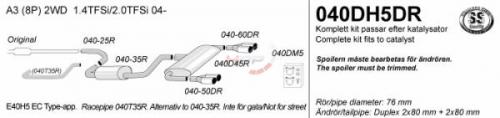 Catback výfuk Simons Audi A3 8P 2WD 1.4TSi/2.0 TFSi (03-13). Kompletní výfukový systém od katalyzátoru.
