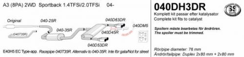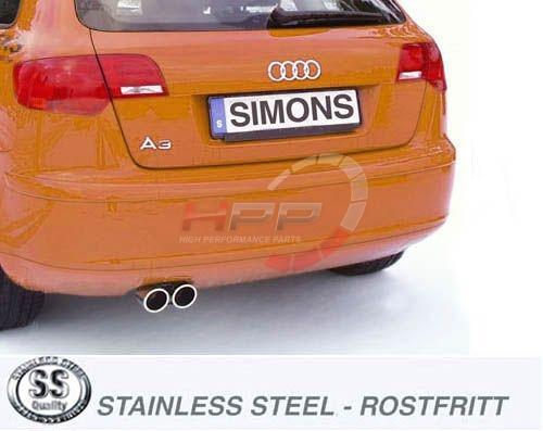 Catback výfuk Simons Audi A3 8PA 2WD Sportback 1.4/2.0 TFSi (04-13). Kompletní výfukový systém od katalyzátoru.