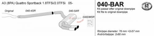 Catback výfuk Simons Audi A3 8PA Quattro Sportback 1.8/2.0 TFSi (05-13). Kompletní výfukový systém od katalyzátoru.