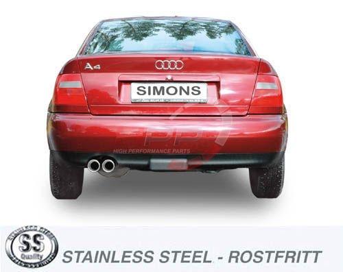 Catback výfuk Simons Audi A4 B5 FWD Sedan/Avant 2.4 165PS/2.8 193PS (96-00). Kompletní výfukový systém od katalyzátoru.