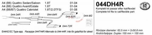 Catback výfuk Simons Audi A4 B6 Quattro Sedan/Avant 1.8T (01-05). Kompletní výfukový systém od katalyzátoru.