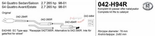 Catback výfuk Simons Audi S4 B5 Quattro Limousine/Avant 2.7 265PS (97-01). Kompletní výfukový systém od katalyzátoru.