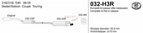 Catback výfuk Simons BMW E46 sedan/coupe/kombi 316i/318i (98-05). Kompletní výfukový systém od katalyzátoru.
