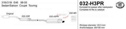 Catback výfuk Simons BMW E46 sedan/coupe/kombi 316i/318i (98-05). Kompletní výfukový systém od katalyzátoru.