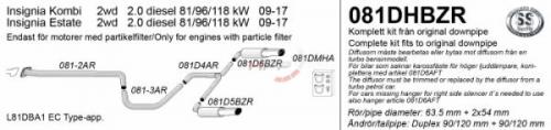 Catback výfuk Simons Opel Insignia 2WD kombi 2.0 Diesel 81/96/118kW (09-17). Kompletní výfukový systém od katalyzátoru. Určeno pouze pro modely s pevným filtrem částic.