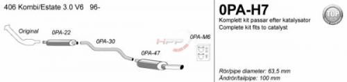 Catback výfuk Simons Peugeot 406 kombi 3.0 V6 (96-04). Kompletní výfukový systém od katalyzátoru.