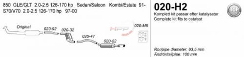 Catback výfuk Simons Volvo 850 GLE/GLT 2.0-2.5 126-170PS (91-). Kompletní výfukový systém od katalyzátoru.