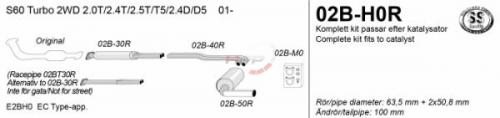 Catback výfuk Simons Volvo S60 Turbo 2WD 2.0T/2.4/2.5T T5/2.4D D5 (01-). Kompletní výfukový systém od katalyzátoru.