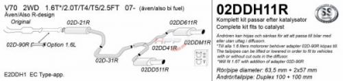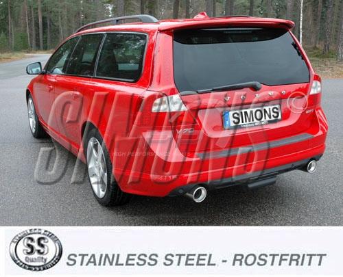 Catback výfuk Simons Volvo V70 2WD 1.6/2.0 T4/T5 / 2.5FT (07-). Kompletní výfukový systém od katalyzátoru.