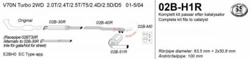 Catback výfuk Simons Volvo V70N Turbo 2WD 2.0T/2.4T/2.5T T5 / 2.4D/2.5D D5 (01-05/04). Kompletní výfukový systém od katalyzátoru.