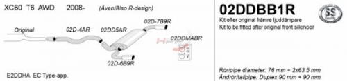Catback výfuk Simons Volvo XC60 AWD T6 (08-). Kompletní výfukový systém od předního tlumiče.