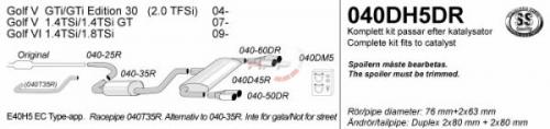 Catback výfuk Simons VW Golf 5 1.4TSi/1.8TFSi/2.0TFSi vč. GTi/ED30 (03-10). Kompletní výfukový systém od katalyzátoru.