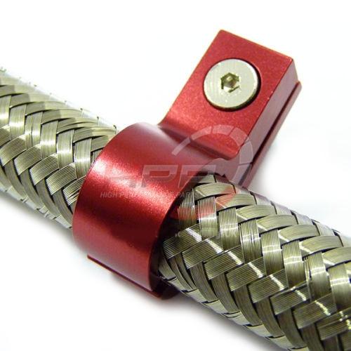 Celohliníková konstrukce s eloxovaným povrchem. Vyrobena na CNC s maximální přesností. Eliminuje vibrace. Určena pro opletené hadice nebo teflonové PTFE. Snadná instalace pomocí přiložené šroubu a matky. Univerzální použití.