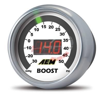 AEM digitání budík tlak turba se vyznačuje nepřekonatelnou přesností a viditelností. Každý budík obsahuje 24-barevnou stupnici LED diod (červená, zelená, žlutá), která se mění v závislosti na momentálním tlaku, a třímístnou číslící, která zobrazuje aktuální tlak turba v reálném čase.