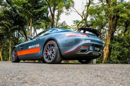 Downpipes se sportovními katalyzátory Innotech (IPE) na Mercedes AMG GT S 4.0 V8 twin-turbo M178 (15-). Sportovní katalyzátory včetně downpipes (první díl výfuku).