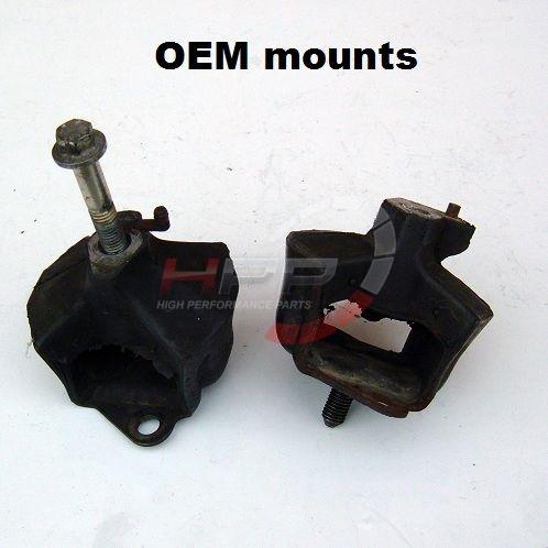 Přímá náhrada za sériový pravý a levý držák. Tyto držáky motoru jsou speciálně navrženy pro zvýšení kontroly nad vozem a pro umocnění pocitu z jízdy. Použití segmentů z přírodního kaučuku dodává autům mnohem větší komfort a ochranu před nežádoucími vibracemi než aftermarketové uretanové nebo pevné silentbloky.