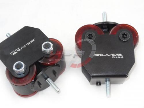 Přímé náhrady za sériové držáky motoru. Jsou speciálně navrženy pro zvýšení kontroly nad vozem, tedy jeho ovladatelností a pro umocnění pocitu z jízdy. Ideální jak pro driftovací speciály, tak pro auta na denní ježdění. Silentbloky jsou vyrobeny z polyuretanu 60ShA. Výška držáků: 100mm.