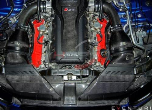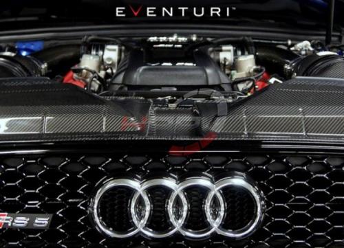 Karbonový kryt přesně navazuje na karbonový kit sání Eventuri s označením EVE-RS5-INT a spolu s karbonovým krytem motoru dokonale dokresluje agresivní vzhled motorového prostoru.