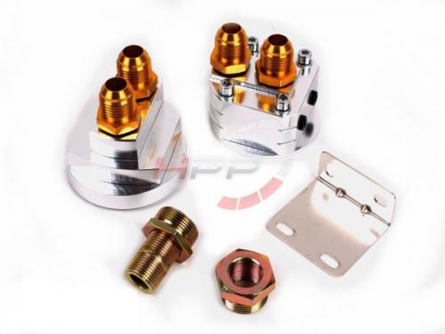 Externí relokační držák olejového filtru ze záslepkou na blok motoru - vývody D-10. Určený pro montáž olejového filtru mimo blok motoru.