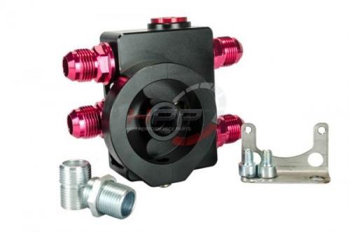 Externí relokační držák olejového filtru ProRacing M20 x 1,5 a 3/4"-16UNF s termostatem - 2x vývody D-10.