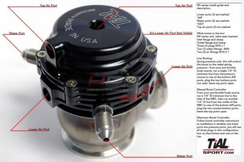 Wastegate Tial Sport typ MV-S 38mm je mnohem kompaktnější než jeho předchůdce F38. Měří pouze 94mm na výšku. Díky V-band přírubám je instalace jednodušší a rychlejší. WG disponuje třemi spodními a dvěma vrchními vzduchovými porty.