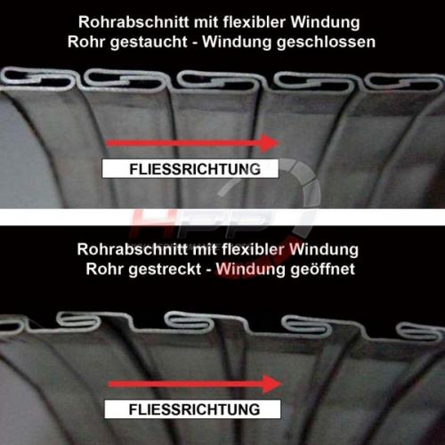 - Flexibilní trubky Powersprint (také vlnité hadice nebo výfukové hadice) jsou celé vyrobeny z nerezové oceli 304 AISI (V2A).