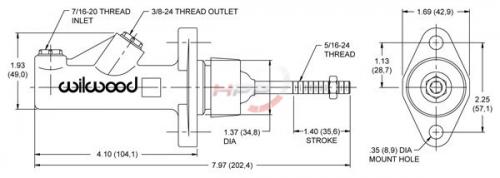 Hlavní brzdový válec Wilwood Compact - velikost 0.750" - 19mm.