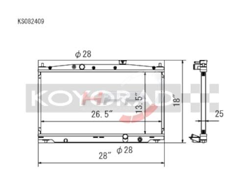 Hliníkový chladič japonského výrobce Koyo Rad je perfektní upgrade za sériový chladič. Zvyšuje značně chladící efekt díky celohliníkové konstrukci a celkového zpracování samotného jádra. Tím snižuje značně teplotu chladící kapaliny a tím prodlužuje celkovou životnost motoru, zejména po jeho úpravách, kde jsou zvýšené nároky na chlazení. Má až o 35% lepší chladící účinek než tovární chladič. Chladič je dodáván s vysokotlakovým víčkem. Chladiče Koyo jsou ručně montované, pájené technologií Nocolokem a svařovány pomocí TIG. To je jen několik vlastností, které si vysloužily radiátorům Koyorad jejich vynikající pověst v oblasti výkonných radiátorů po celém světě. Přímá instalace bez úprav pokud není uvedeno jinak.