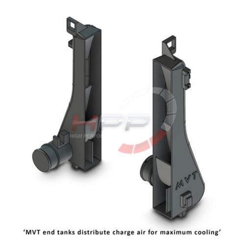 - Technologie MVT navržená společností Direnza nabízí vyšší účinnost mezichladiče ve srovnání s jinými alternativami na trhu s náhradními díly. Toho je dosaženo použitím pečlivě umístěných lopatek v koncové nádrži, které rovnoměrně distribuují vzduch přes celé jádro. Využitím celé plochy jádra mezichladiče je optimalizováno chlazení nasátého vzduchu, což vede k většímu výkonu.