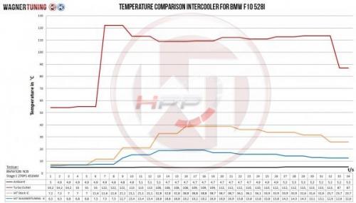 Vysoce výkonný intercooler německého výrobce Wagner Tuning disponuje jádrem o rozměru 500 x 254 x 110/55mm a nabízí o 83% větší chladící plochu a o 62% větší objem vzduchu v porovnání s originálními chladiči. Nově navržené závodní jádro zajišťuje velmi dobrý průtok vzduchu a je také velmi lehké. Bočnice jsou vyrobeny z litého hliníku a zajišťují optimální průtok a vysokou účinnost chlazení, která byla simulovaná a analyzována v CAD programech k docílení nejlepších výsledků. Výsledkem jsou výborné chladící vlastnosti s minimálním zpětným tlakem. Tento mezichladič je tou nejlepší volbou, pokud jde o nárůst výkonu a snížení teploty nasávaného vzduchu. IC disponuje antikorozním ochranným nátěrem s dokonalou charakteristikou rozptýlení tepla. Snadná instalace Plug & Play pouhou výměnou za původní mezichladiče. Wagner Tuning intercooler zaručuje optimální chlazení stlačeného vzduchu s jasným zvýšením výkonu! Všechny výrobky procházejí přísnou kontrolu kvality.