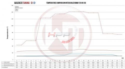 Vysoce výkonný intercooler německého výrobce Wagner Tuning disponuje jádrem o rozměru 520 x 210 x 150mm a nabízí o 165% větší chladící plochu a o 223% větší objem vzduchu v porovnání s originálními chladiči. Nově navržené jádro "tube and fin" zajišťuje velmi dobrý průtok vzduchu a je také velmi lehké. Bočnice jsou vyrobeny z litého hliníku a zajišťují optimální průtok a vysokou účinnost chlazení, která byla simulovaná a analyzována v CAD programech k docílení nejlepších výsledků. Výsledkem jsou výborné chladící vlastnosti s minimálním zpětným tlakem. Tento mezichladič je tou nejlepší volbou, pokud jde o nárůst výkonu a snížení teploty nasávaného vzduchu. IC disponuje antikorozním ochranným nátěrem s dokonalou charakteristikou rozptýlení tepla. Snadná instalace Plug & Play pouhou výměnou za původní mezichladiče. Wagner Tuning intercooler zaručuje optimální chlazení stlačeného vzduchu s jasným zvýšením výkonu! Všechny výrobky procházejí přísnou kontrolu kvality.