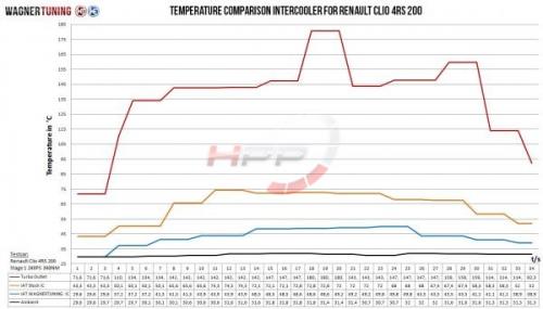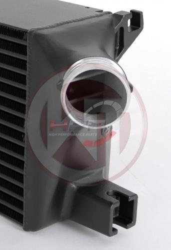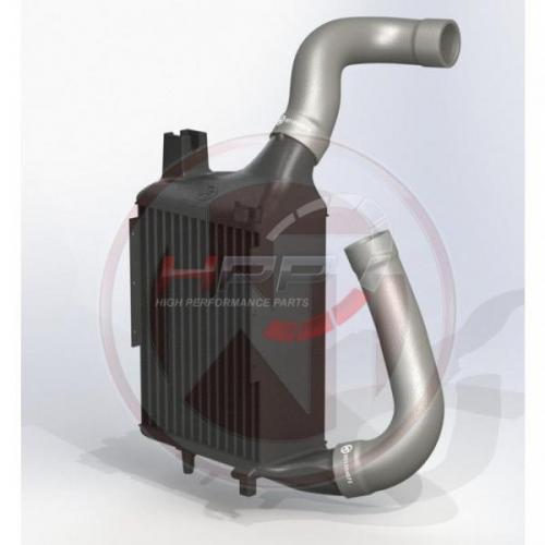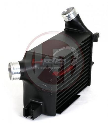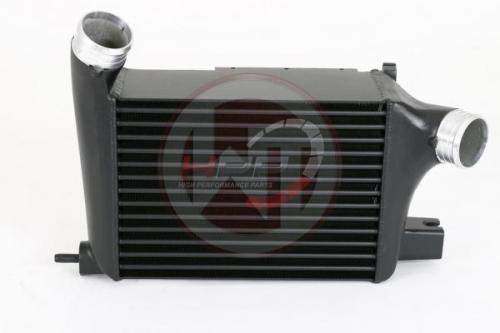 Vysoce výkonný intercooler německého výrobce Wagner Tuning disponuje jádrem o rozměru 300 x 222 x 125mm a nabízí o 16% větší chladící plochu a o 113% větší objem vzduchu v porovnání s originálním chladičem. Nově navržené závodní jádro zajišťuje velmi dobrý průtok vzduchu a je také velmi lehké. Váha celého intercooleru je pouhých 5,5kg. Bočnice jsou vyrobeny z litého hliníku a zajišťují optimální průtok a vysokou účinnost chlazení, která byla simulovaná a analyzována v CAD programech k docílení nejlepších výsledků. S pomocí přídavných vzduchových přepážek a vnitřního vstupu je dosaženo optimálního plnění chladiče. Sériový systém připojení hadic byl odstraněn a nahrazen větším průměrem 60mm na vstupu i výstupu. Výsledkem jsou výborné chladící vlastnosti s minimálním zpětným tlakem. Tento kit je tak přesně to pravé pro závodní účely. Intercooler je namontován na původní místo a využívá původních montážních bodů, instalace je tak velice snadná (Plug & play). Wagner Tuning intercooler zaručuje optimální chlazení plnicího vzduchu s jasným zvýšením výkonu!
