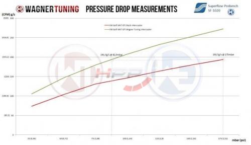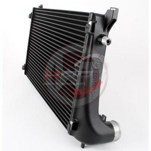 Vysoce výkonný intercooler německého výrobce Wagner Tuning disponuje jádrem o rozměru 610 x 440 x 65mm a nabízí o 10% větší chladící plochu a o 50% větší objem vzduchu (17,45 litrů) v porovnání s originálním chladičem. Nově navržené "tube and fin" jádro zajišťuje velmi dobrý průtok vzduchu a je také velmi lehké. Bočnice jsou vyrobeny z litého hliníku a zajišťují optimální průtok a vysokou účinnost chlazení, která byla simulovaná a analyzována v CAD programech k docílení nejlepších výsledků. Výsledkem jsou výborné chladící vlastnosti s minimálním zpětným tlakem. Tento mezichladič je tou nejlepší volbou, pokud jde o nárůst výkonu a snížení teploty nasávaného vzduchu. IC disponuje antikorozním ochranným nátěrem s dokonalou charakteristikou rozptýlení tepla. Snadná instalace Plug & Play pouhou výměnou za původní mezichladič. Wagner Tuning intercooler zaručuje optimální chlazení stlačeného vzduchu s jasným zvýšením výkonu! Všechny výrobky procházejí přísnou kontrolu kvality. Intercooler pasuje na sériové tlakové vedení.