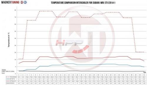 Vysoce výkonný intercooler německého výrobce Wagner Tuning disponuje jádrem o rozměru 530 x 205 x 95mm a nabízí o 23,6% větší chladící plochu a o 95,5% větší objem vzduchu (10,03 litrů) v porovnání s originálním chladičem. Nově navržené závodní jádro zajišťuje velmi dobrý průtok vzduchu a je také velmi lehké. Bočnice jsou vyrobeny z litého hliníku a zajišťují optimální průtok a vysokou účinnost chlazení, která byla simulovaná a analyzována v CAD programech k docílení nejlepších výsledků. Výsledkem jsou výborné chladící vlastnosti s minimálním zpětným tlakem. Tento mezichladič je tou nejlepší volbou, pokud jde o nárůst výkonu a snížení teploty nasávaného vzduchu. IC disponuje antikorozním ochranným nátěrem s dokonalou charakteristikou rozptýlení tepla. Snadná instalace Plug & Play pouhou výměnou za původní mezichladič. Wagner Tuning intercooler zaručuje optimální chlazení stlačeného vzduchu s jasným zvýšením výkonu! Všechny výrobky procházejí přísnou kontrolu kvality. Intercooler pasuje na sériové tlakové vedení.