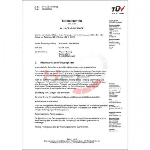 Vysoce výkonný přepracovaný intercooler 2. generace německého výrobce Wagner Tuning disponuje jádrem o rozměru 610 x 440 x 65mm a nabízí o 10% větší chladící plochu a o 50% větší objem vzduchu (17,45 litrů) v porovnání s originálním chladičem. Nově navržené závodní jádro zajišťuje velmi dobrý průtok vzduchu a je také velmi lehké. Bočnice jsou vyrobeny z litého hliníku a zajišťují optimální průtok a vysokou účinnost chlazení, která byla simulovaná a analyzována v CAD programech k docílení nejlepších výsledků. Výsledkem jsou výborné chladící vlastnosti s minimálním zpětným tlakem. Tento mezichladič je tou nejlepší volbou, pokud jde o nárůst výkonu a snížení teploty nasávaného vzduchu. IC disponuje antikorozním ochranným nátěrem s dokonalou charakteristikou rozptýlení tepla. Snadná instalace Plug & Play pouhou výměnou za původní mezichladič. Wagner Tuning intercooler zaručuje optimální chlazení stlačeného vzduchu s jasným zvýšením výkonu! Všechny výrobky procházejí přísnou kontrolu kvality. Intercooler pasuje na sériové tlakové vedení.