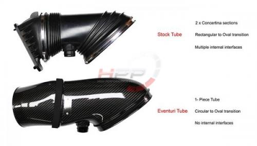 - nasávací trubice byla navržena tak, aby zlepšila průtok vzduchu ve srovnání se zásobní trubicí. Jedná se o jednodílnou konstrukci. Abychom ocenili zlepšení v návrhu, musíme se blíže podívat na zásobní systém níže. Narozdíl od sériové nasávací trubice, trubice Eventuri nemá žádné vnitřní rozhraní a tak umožňuje hladký průtok vzduchu.