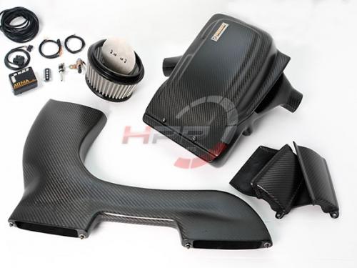 Poznámka: k dispozici je také variabilní typ sání za příplatek, který je viditelný na fotkách. Ten obsahuje vzduchový filtr s nerezovou konstrukcí a vestavěnou klapkou, která je ovládána elektronicky pomocí dálkového ovladače a řídící jednotky napojenou do OBDII konektoru. Hlavním cílem je obnova ztráty kroutícího momentu hlavně v nízkých otáčkách, což je častý jev u sportovních filtrů. Klapka umožňuje individuálně nastavit proudění vzduchu pomocí dálky nebo Wi-Fi aplikace v chytrém telefonu (Apple, Google). Tento systém je patentován v Německu firmou Arma.